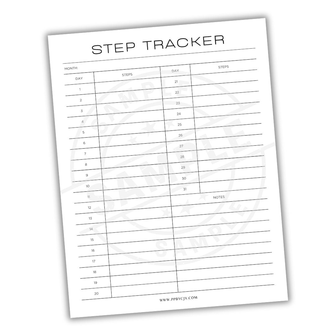 Step tracker sheet with a white background